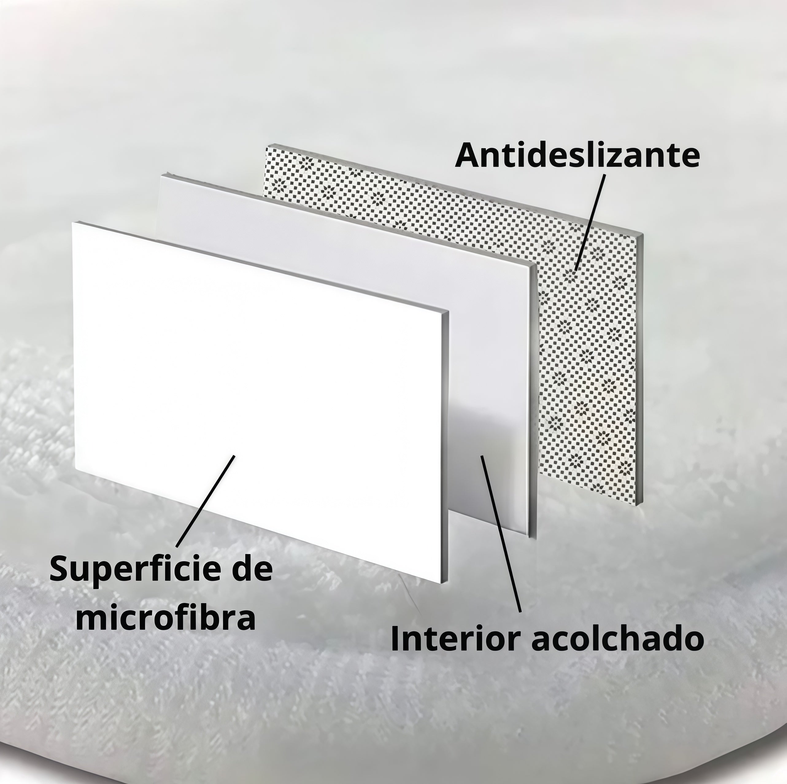 Nuestra alfombra está fabricada con microfibra de alta calidad, suave al tacto y con base antideslizante para mayor seguridad.